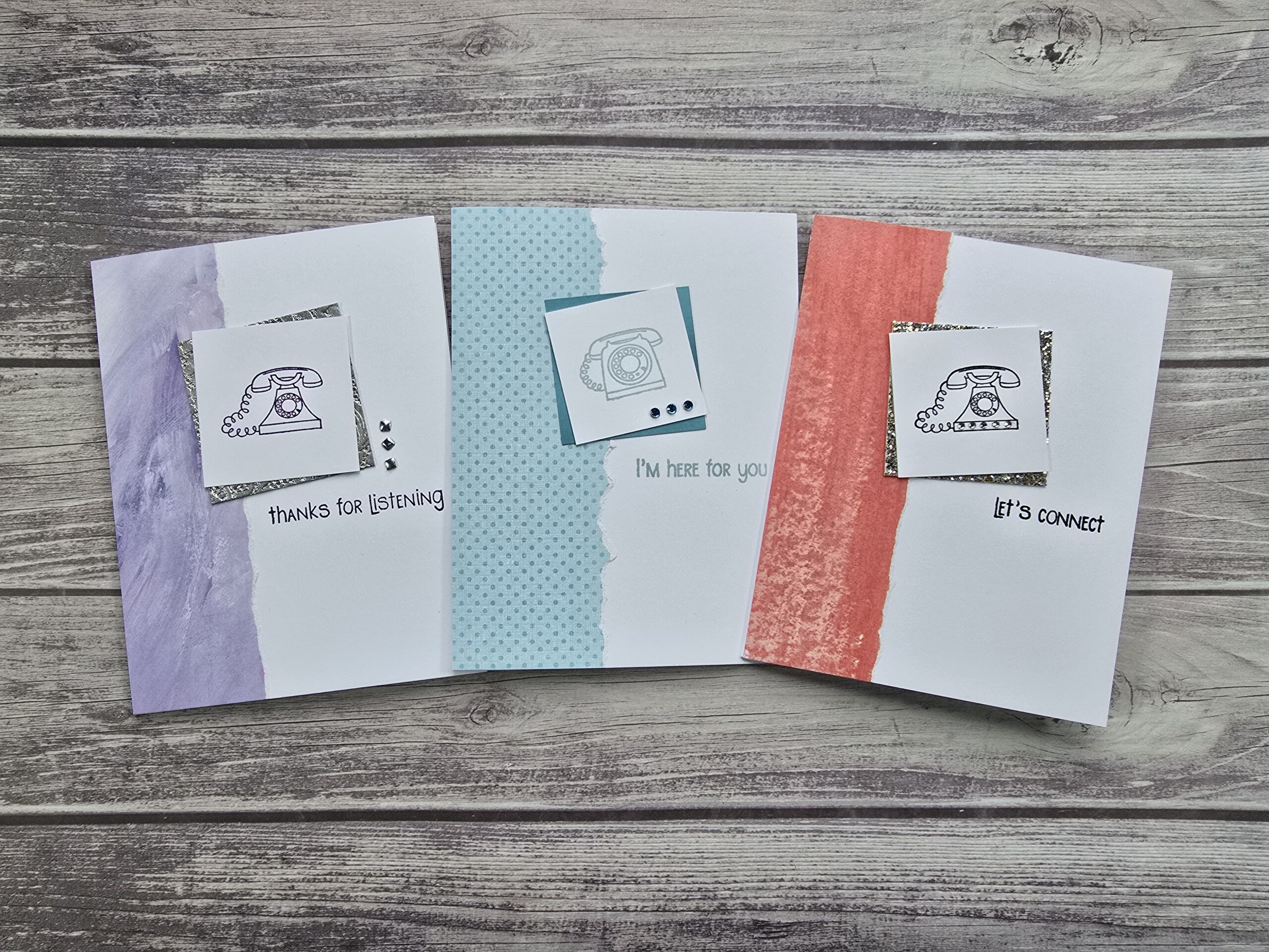 Hey friends! I created three cards using a stamp set with adorable retro phones. I remember using these kinds of phones when I was a kid. We even had a party line back in the day. While there is nostalgia in those memories, I am thankful for the technology we have today. I created these…